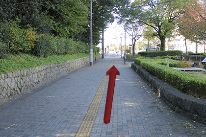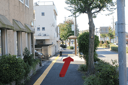 名古屋鉄道 神宮前駅西口より熱田神宮を抜け西門前の歩道橋を超え白鳥小学校北門前を通り、突き当りを右へ、50m